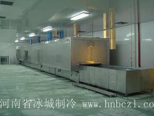 (二)、速凍采用直線速凍通道,肉品凍結(jié)均勻,省電,降低肉品干耗,總投資與速凍庫大致相當(dāng)。當(dāng)速凍加工量大時(shí),直線通道總投資會(huì)有所降低