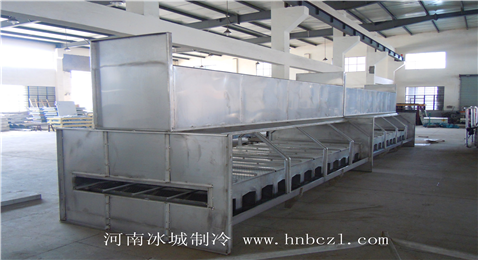 直線通道速凍裝置是專為凍結(jié)分割肉而設(shè)計的大型速凍設(shè)備,該設(shè)備凍結(jié)過程與普通速凍庫相比,有以下優(yōu)點: